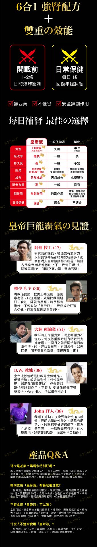 正宗原料製成的優質營養品,包括秘魯國寶黑瑪卡(Black Maca)、透納葉萃取物、紅參萃取物、南瓜籽萃取物等。
